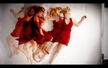 Seven In Bed is a video installation that explores the transitory nature of the human presence and the ability of the human image to leave a mark. The video is projected onto a sculptural structure made of fabric, evoking bed linens or burial shrouds.