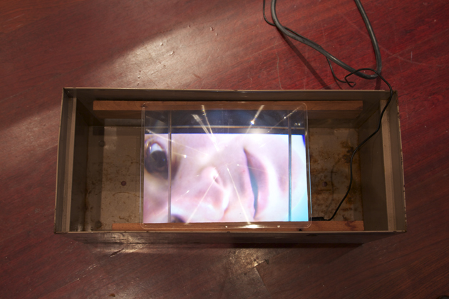 Jar, 1:32, 2011, single channel HD video, 1920 x 1080, found brown metal box, Fresnel lens, unique object, custom audio.